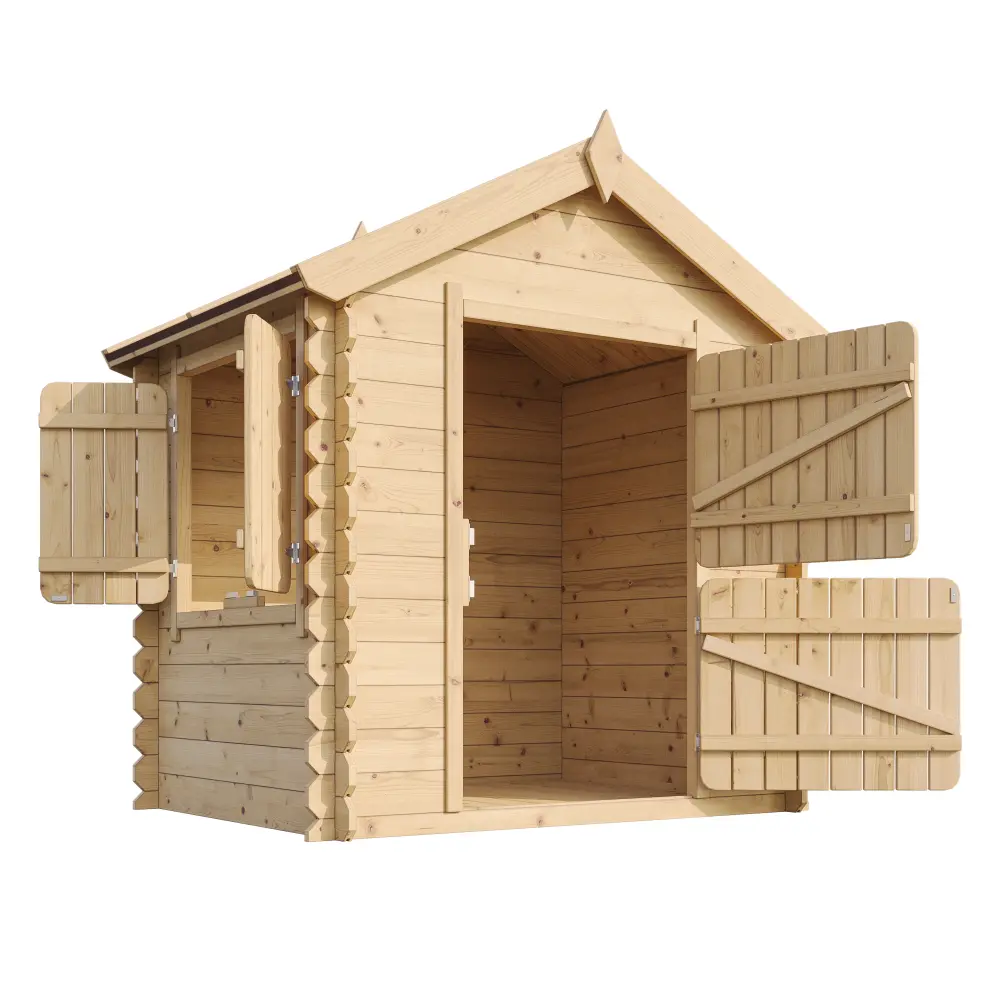 De constructie van het speelhuis is gebaseerd op tand-en-groefverbindingen en kan door één persoon eenvoudig worden gemonteerd. Alle onderdelen worden veilig verpakt geleverd met duidelijke montage-instructies, waardoor het een ideaal DIY-project is.