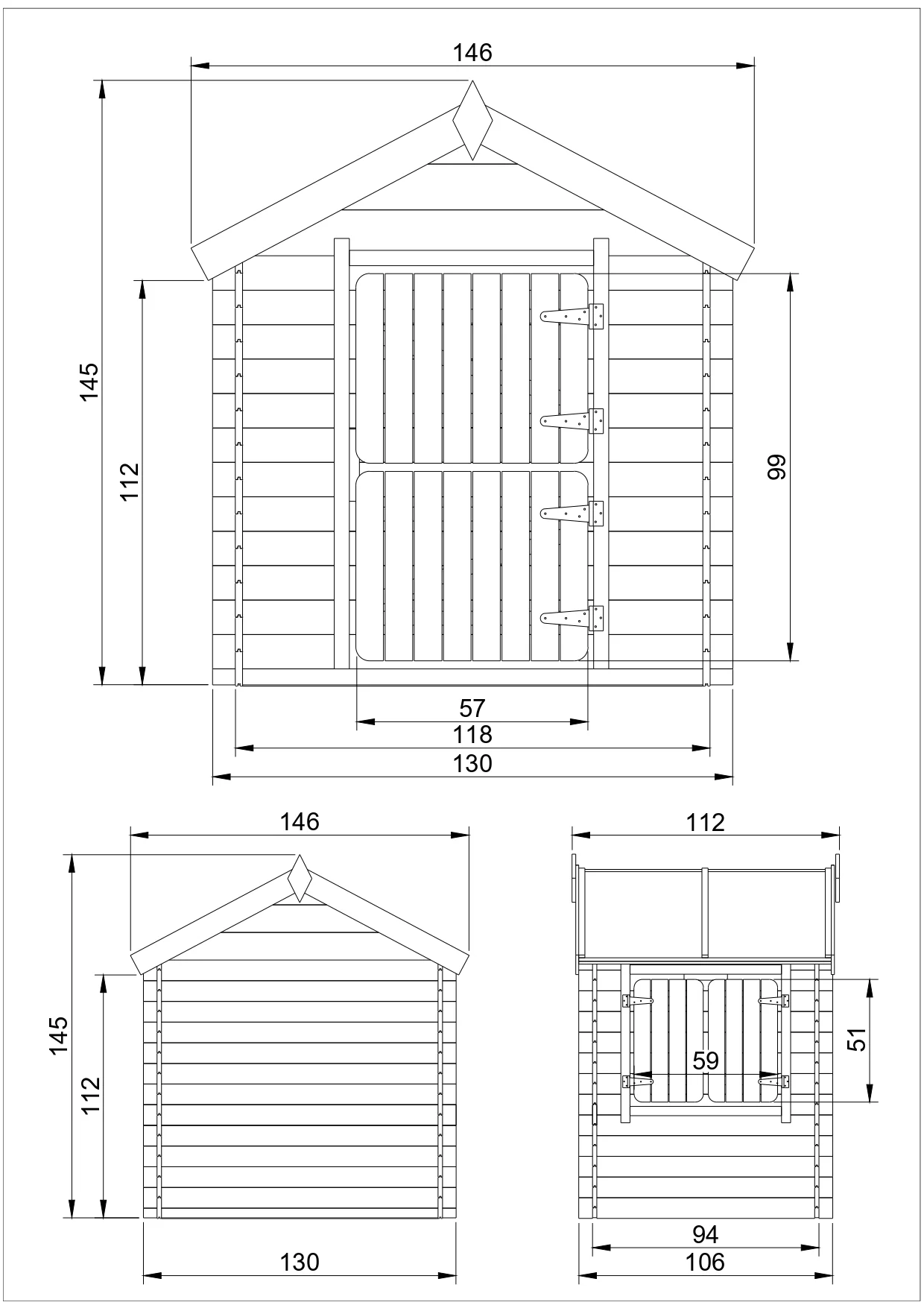 Wij gebruiken hoogwaardig FSC® C110730-gecertificeerd gedroogd en geschaafd dennen-/sparrenhout. Kleine scheurtjes, kleurverschillen en speling tussen planken zijn natuurlijke kenmerken en geen defecten. Na correcte behandeling stabiliseert het hout. Afmetingen kunnen 1–2 mm variëren.