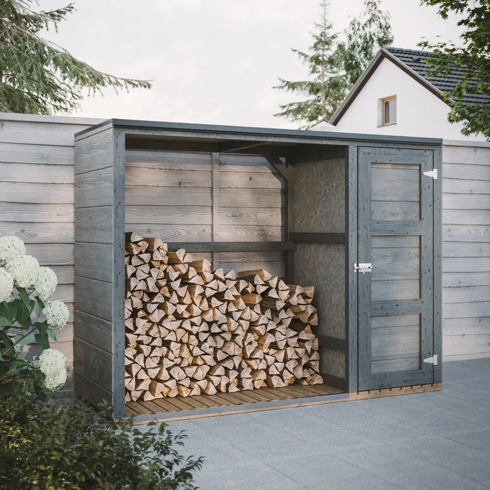 De stevige constructie en onderhoudsarme panelen maken dit houthok ideaal voor het netjes en droog bewaren van brandhout, tuingereedschap of buitenspullen.